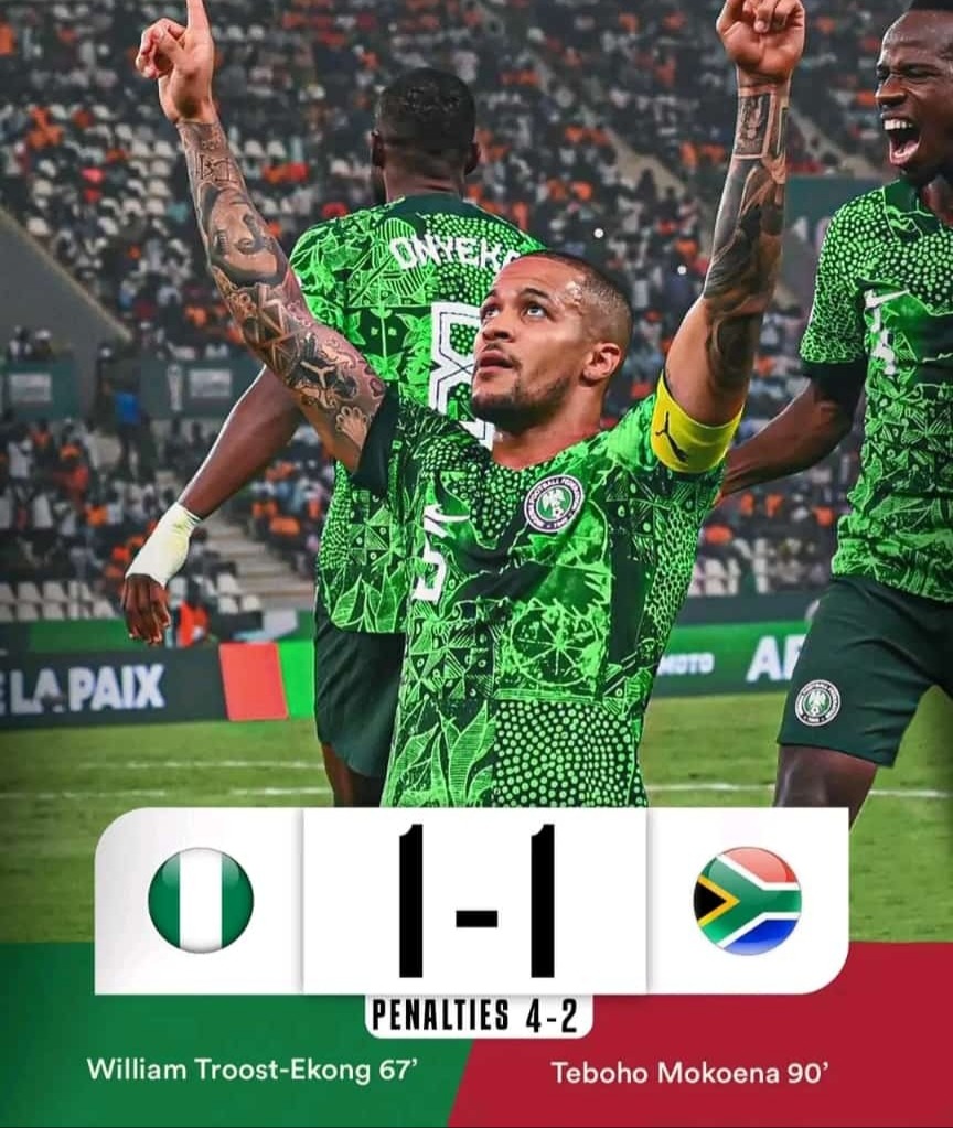Nigeria in nervy, tension-filled competition on Thursday night won South Africa in a penalty shootout after the match ended 1-1 in the regulation time.