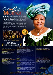 Umunze, Orumba-South LGA, Anambra State – In a grand display of love, respect, and gratitude, Honourable Princess Chinwe Nnabuife, a prominent politician and member of the House of Representatives, bid farewell to her beloved mother, Late Mrs. Chiatusiura Elizabeth Nnabuife, in a befitting burial ceremony.