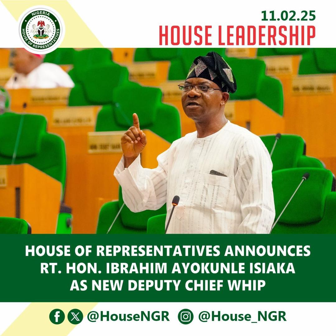Abuja, FCT | Tuesday, February 11, 2025 – The House of Representatives has appointed Rt. Hon. Ibrahim Ayokunle Isiaka (APC, Ogun) as the new Deputy Chief Whip of the Green Chamber.
