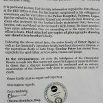 In a letter addressed to the President of the Senate, Godswill Akpabio and Speaker, House of Representatives, Tajudeen Abbas; Barr. Boni expressed the disappointment of the family over the role played by the colleagues of the Late Inspector, calling for thorough investigation, to ascertain the real cause of Peter’s death.