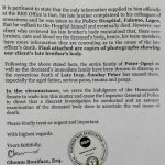 “The Late Insp. Sunday Peters, on the 16th May, 2024, in the normal course of active duty, went on a patrol with his team members along Falomo, Ikoyi, Lagos State and he was hale and healthy.