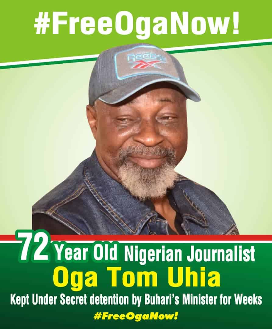 Nigerian Journalists, under the auspices of Concerned Journalists Forum, have cried to President Muhammad Buhari, to intervene and set free, a 72-year old Oga Tom Uhia from the Police detention.